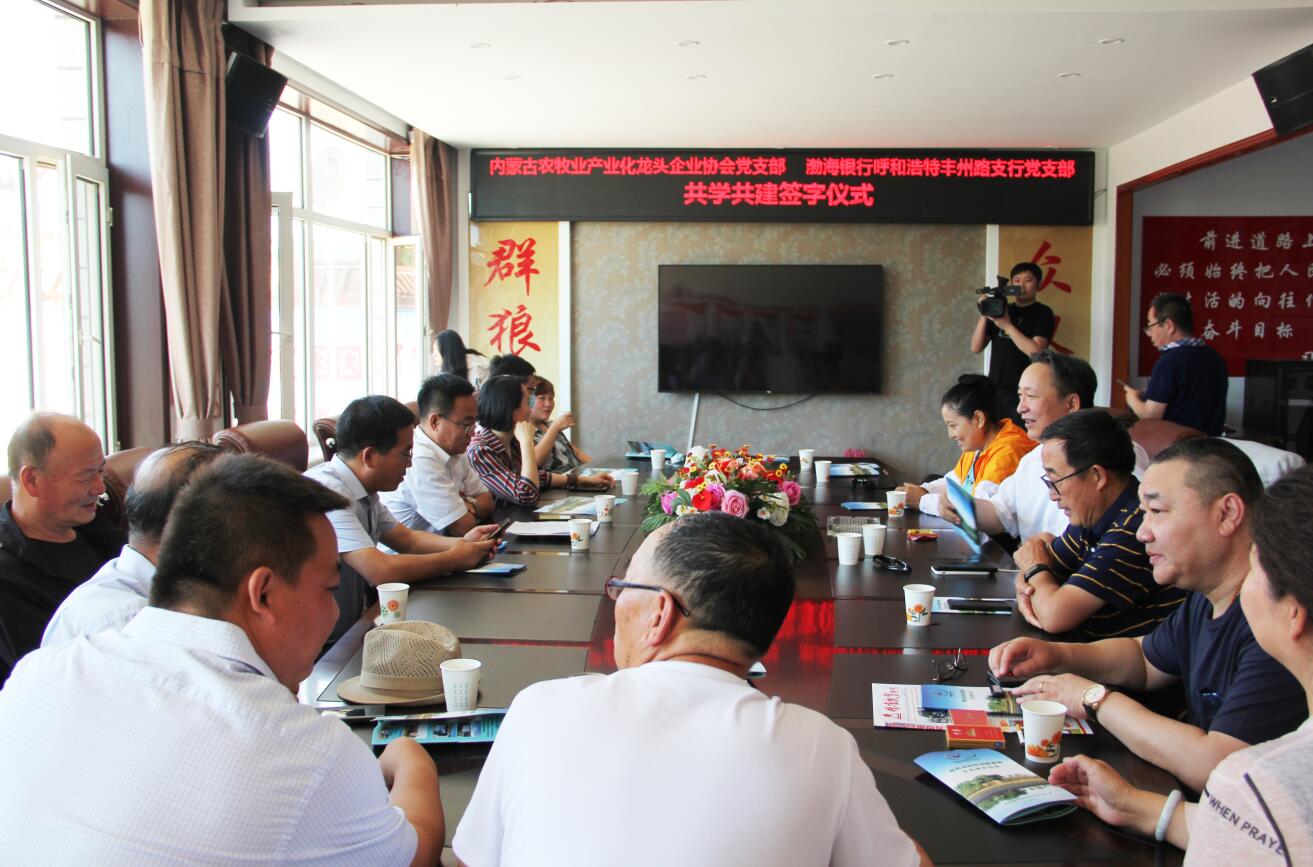 活動過程中,為創(chuàng)造性地推進黨組織“共學(xué)共建”結(jié)對工作,圍繞新時代黨的建設(shè)總要求,內(nèi)蒙古農(nóng)牧業(yè)產(chǎn)業(yè)化龍頭企業(yè)協(xié)會黨支部和渤海銀行呼和浩特豐州路支行黨支部簽訂了《共學(xué)共建結(jié)對協(xié)議》。通過結(jié)對共建,在弘揚社會正能量、加強愛國主義教育等方面樹立新典型,力爭在構(gòu)建銀企合作關(guān)系等方面取得新突破。