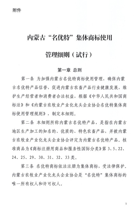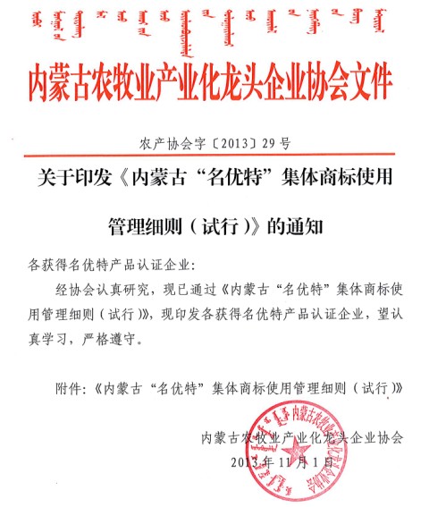 關(guān)于印發(fā)《內(nèi)蒙古“名優(yōu)特”集體商標使用管理細則(試行)的通知》