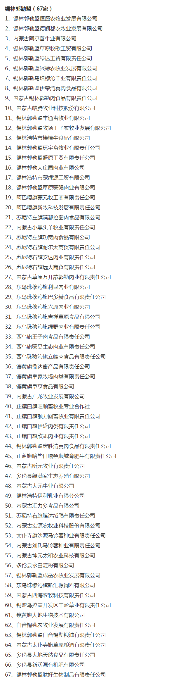 企業(yè)名稱:截止2017年末盟市級農業(yè)產業(yè)化重點龍頭企業(yè)名單