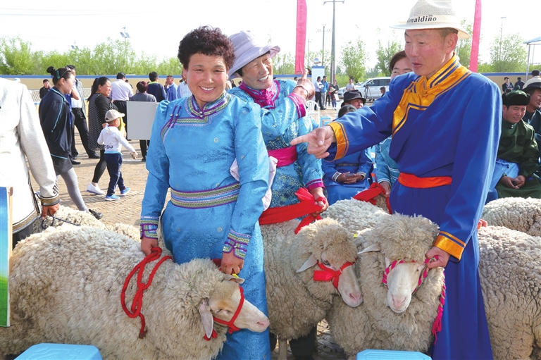 烏審旗牧民趕著自家的優(yōu)質(zhì)細毛羊前來參加旗政府組織的“賽羊大會”。