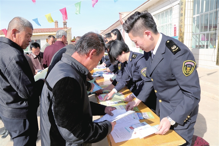 質(zhì)監(jiān)工作人員走進農(nóng)村向農(nóng)民講授農(nóng)業(yè)標準化知識。