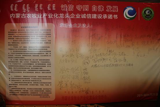 《內(nèi)蒙古農(nóng)牧業(yè)產(chǎn)業(yè)化龍頭企業(yè)誠(chéng)信建設(shè)承諾書(shū)》簽名墻