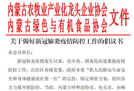標(biāo)題:眾志成城,抗擊疫情—內(nèi)蒙古農(nóng)牧業(yè)產(chǎn)業(yè)化龍頭企業(yè)協(xié)會在行動
