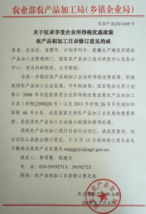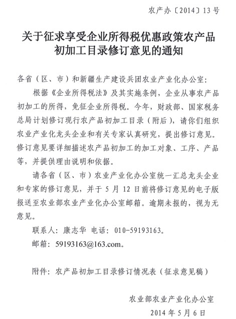 關(guān)于向會員單位征集農(nóng)產(chǎn)品初加工目錄修訂意見的通知