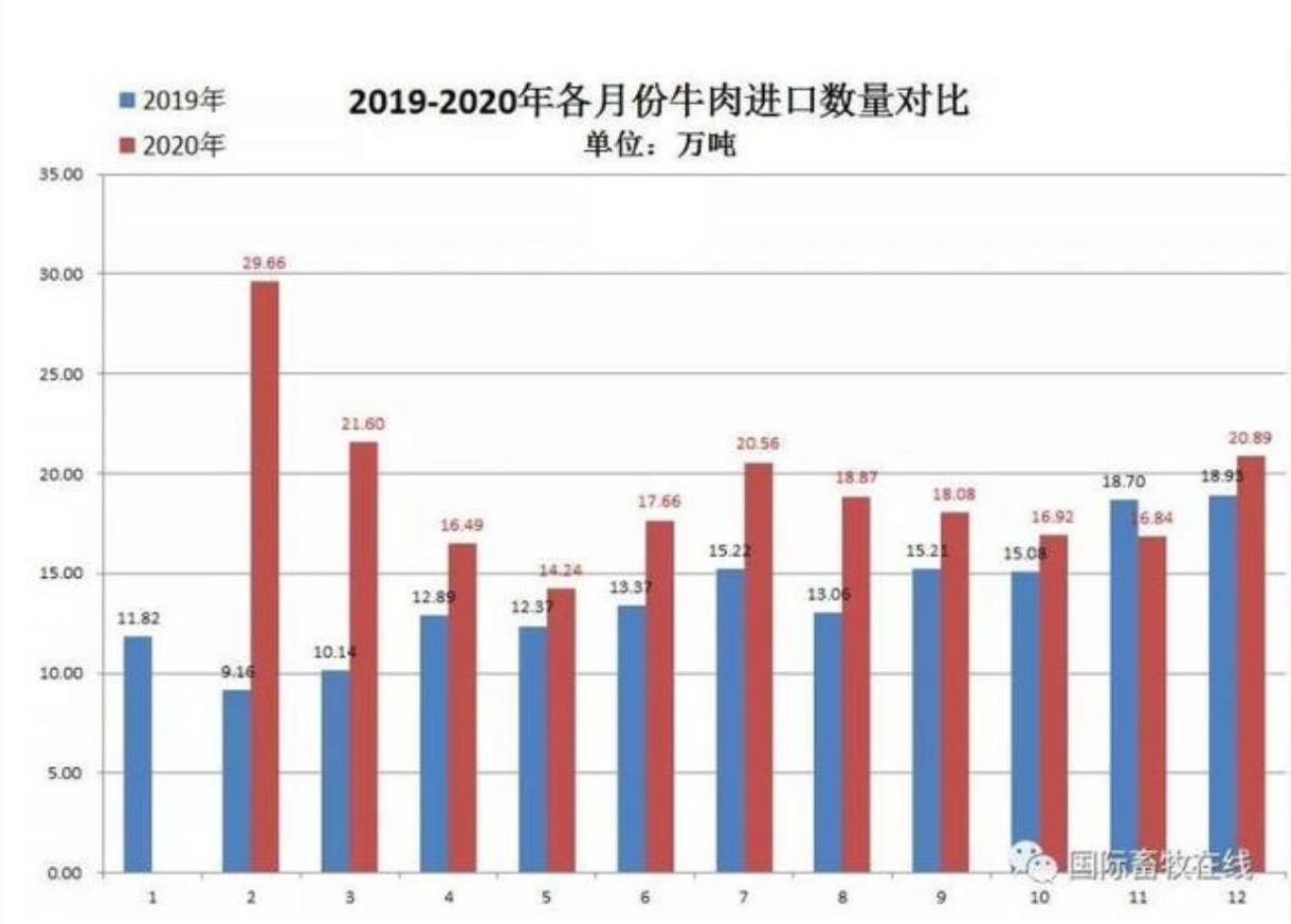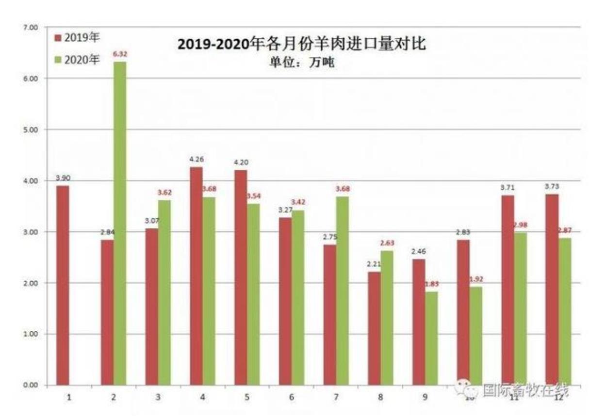 備注:20202月份數(shù)值為1-2月累計數(shù)據(jù),圖表來源于國際畜牧在線)