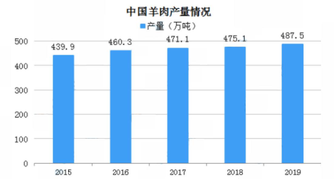 2019年內(nèi)蒙古羊肉產(chǎn)量位居第一達到109.8萬噸,新疆、山東排名第二和第三,產(chǎn)量分別為60.3萬噸、36.9萬噸,此外,河北、河南、四川、甘肅、云南羊肉產(chǎn)量超20萬噸。2015年全國羊肉產(chǎn)量439.9萬噸,2019年增至487.5萬噸,同比增長2.6%。